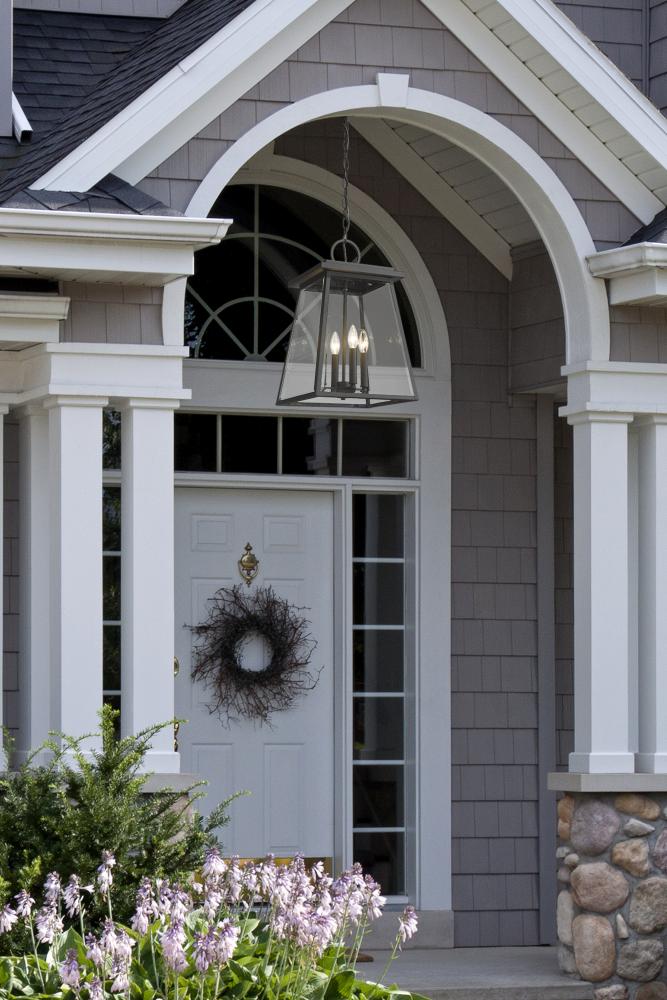 Defying convention, the Broughton series of outdoor lanterns is a well orchestrated craftsmen design with transitional elements. Beveled glass and a decorative loop on the lantern tops are crowning touches, along with stepped design on the top for added di