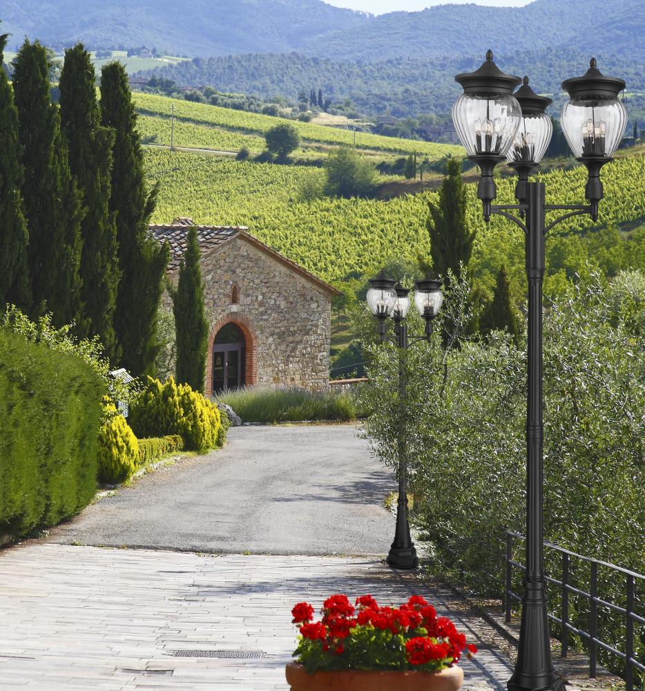 A quartet of teardrop glass shades brings vintage charm to an eye-catching 12-light outdoor post-mounted fixture. Perfect for an inviting front walk to the garden path, it pairs charming design details with a black finish and aluminum construction for superior outdoor performance and style.