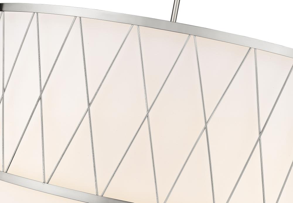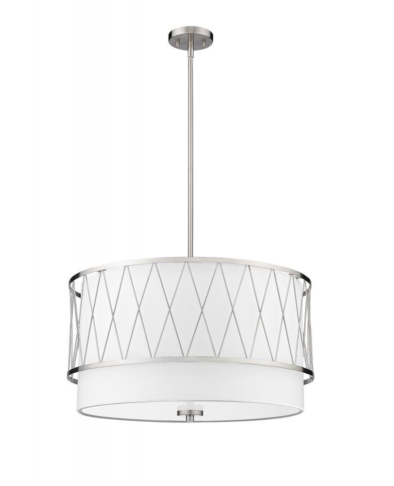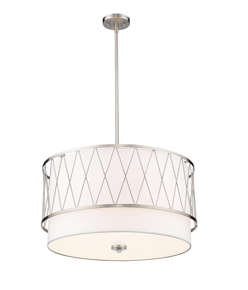 The Dalton pendant offers a universally flattering diamond pattern that dovetails nicely with many styles in the home. The strong steel outer cage makes a dynamic statement in both large and small rooms, while the inner linen fabric shade gently softens t