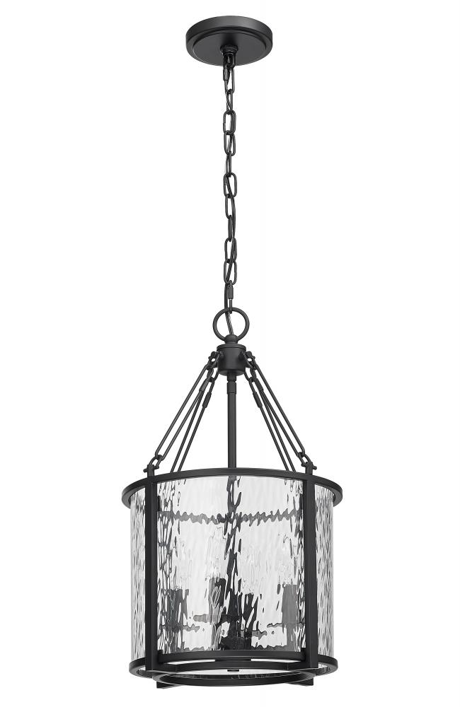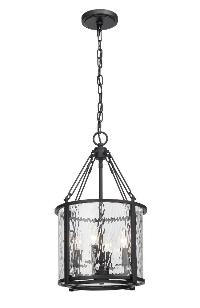 The bold scale of the Barrington series is perfectly proportioned to fit a variety of large spaces. The handsome steel cage in a Matte Black finish, along with the movement of its waterglass shade, adds distinction without competing with other elements in