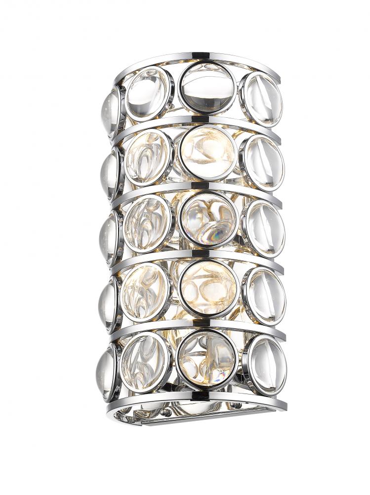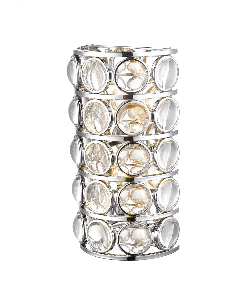 Cast a multidimensional glow with the rounded crystal accents on this rounded light shade. Sleek and clean, the lines of the silhouette are streamlined by a shiny chrome finish.
