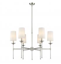 Inspired by our popular Emily Sconce, with its slender silhouette, the Emily Chandelier expands the elegant design statement in one- and two-tier versions available in five to nine lights to suit larger living spaces. The subtly sophisticated style takes