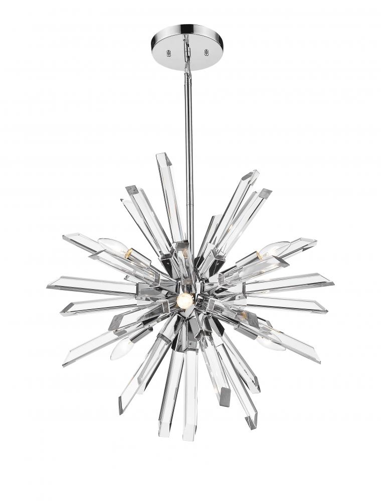 An explosion of beautiful crystal arms extend forth in the Burst collection of crystal fixtures, like stars in the night. The reflective nature of the clear crystal and sleek Chrome finishes make these fixtuers sparkle intensely.