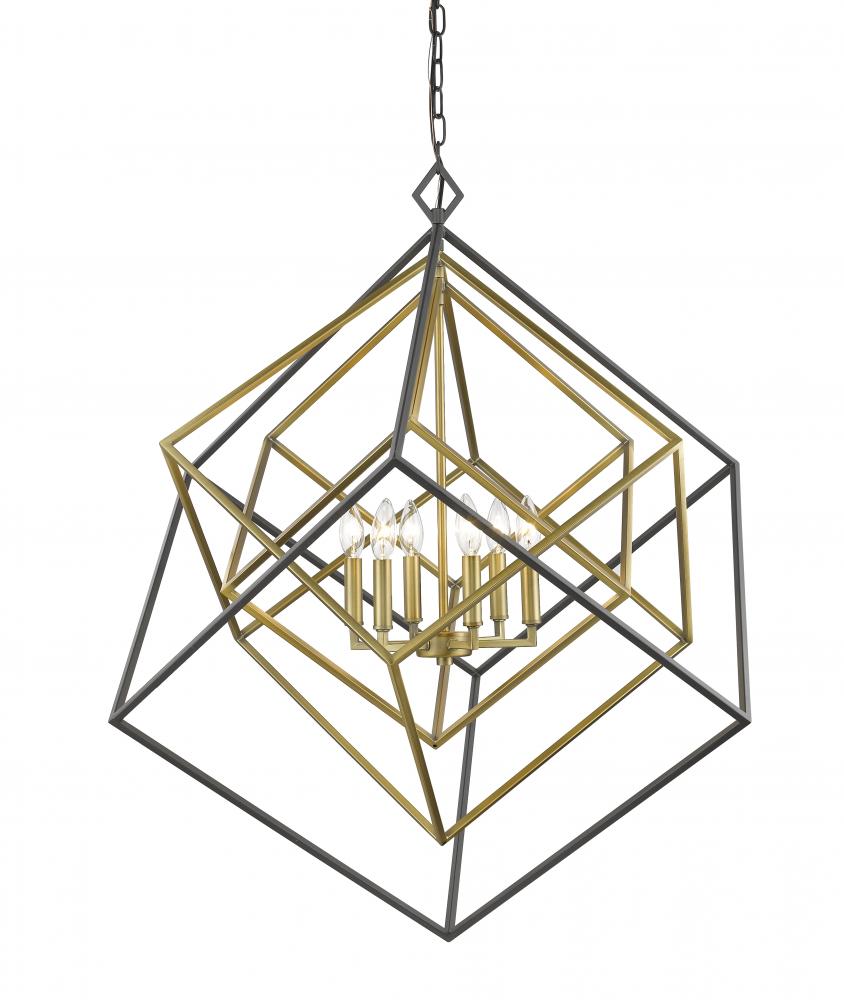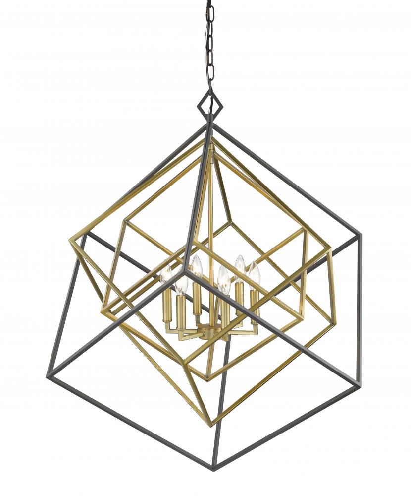 Invigorating and metropolitan, this six-light chandelier embraces warm finishes of olde brass and bronze as it plays up geometric shapes. Its steel frame shows off a complex structure that offers a sweet view of a candelabra-style bulb mount, delivering a mixed motif aesthetic that dresses up any space.