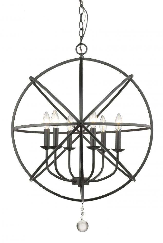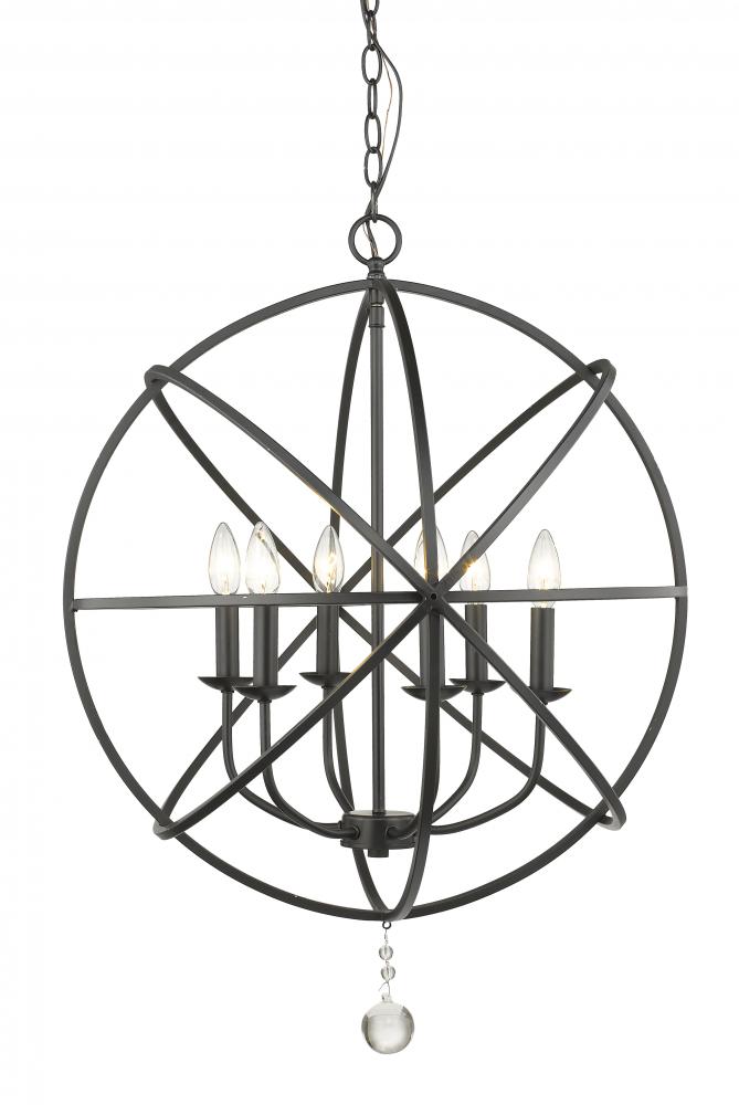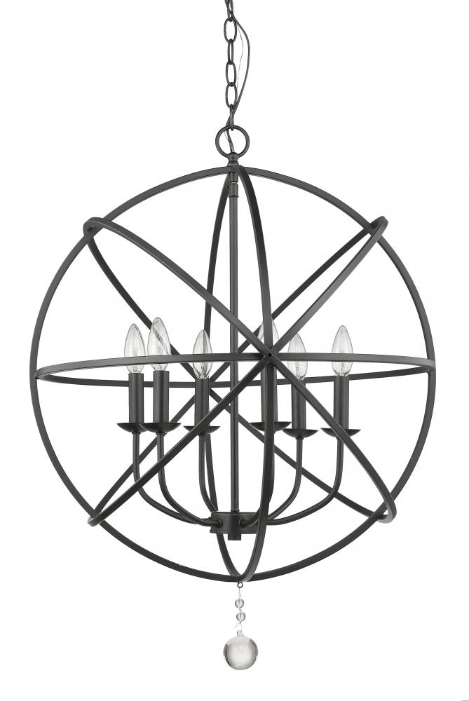 Make this transitional six-light chandelier the center of a custom designed space, and enjoy its atomic-inspired silhouette that adds an upbeat ambiance. A matte black steel frame becomes personalized as you choose finishes for its frame interior, finials, and candelabra bulb bases.