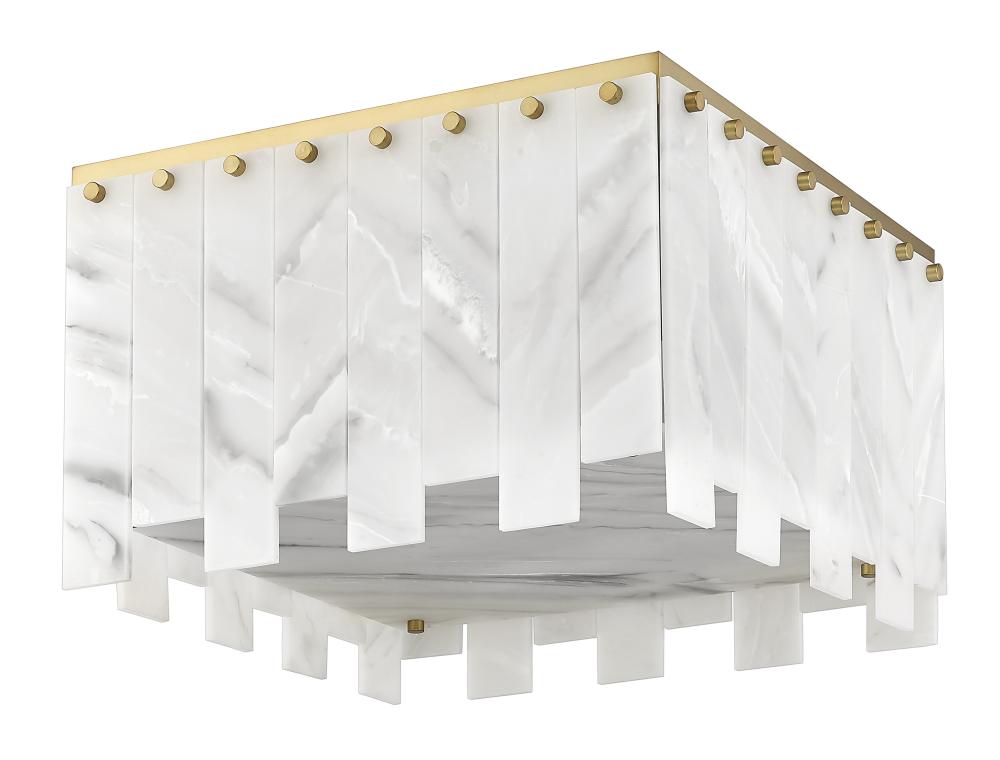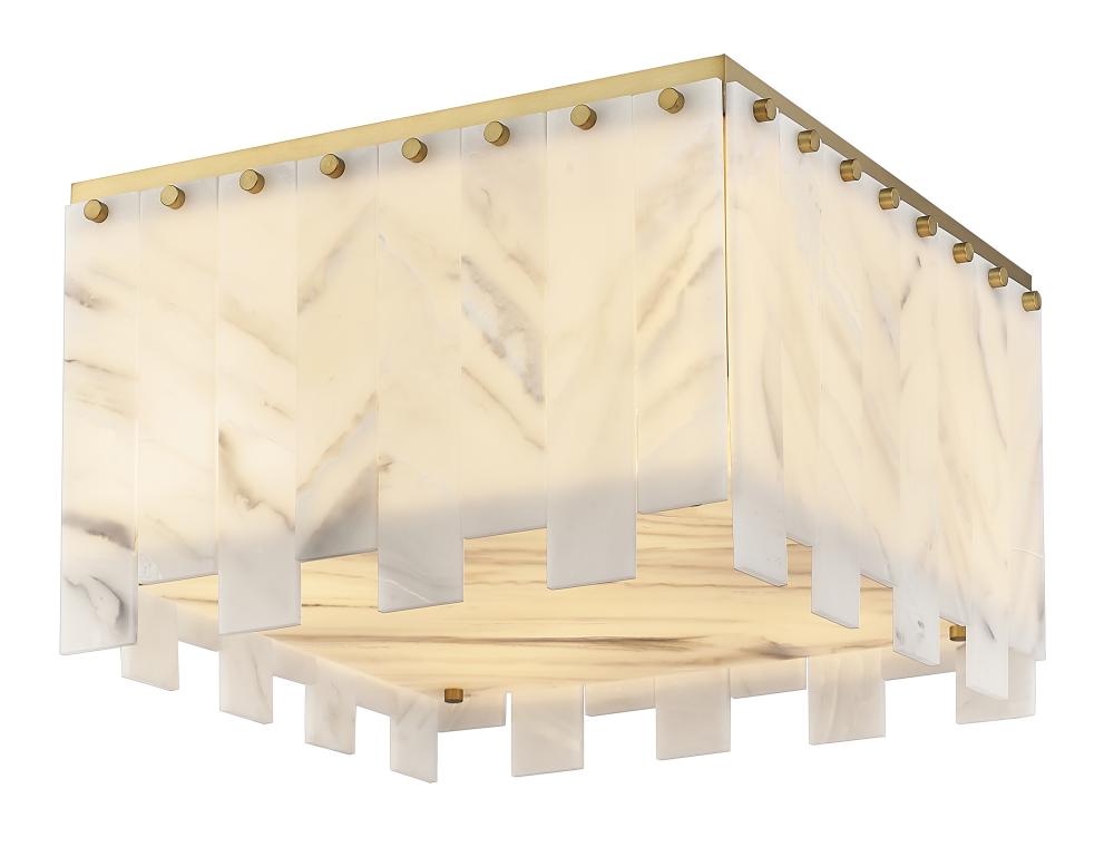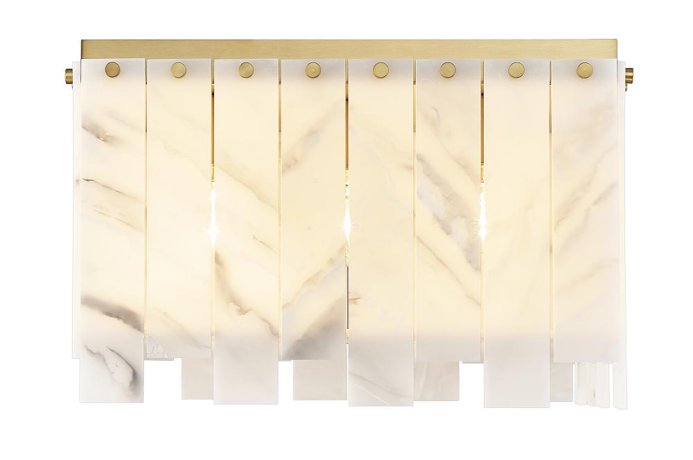 Emulate a chic Art Deco motif in an ensemble craving gallery-influenced attitude. This six-light flush mount ceiling light from the Viviana collection creates impact with alabaster-like strips alternating in length and arranged around a rectangular rubbed brass finish steel frame. Dressed up with whimsical rivot detailing, this flush mount light goes with the flow as it complements a gritty rendition of toned-down glam in a kitchen or entryway.