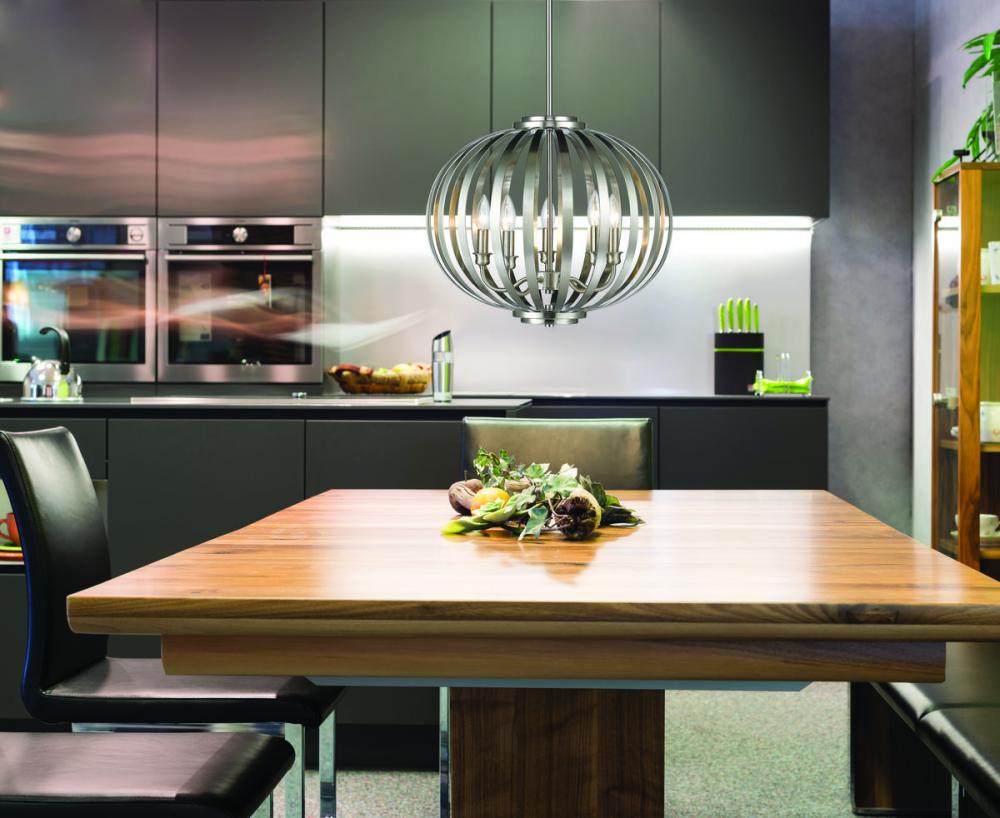 Ribbons of Brushed Nickel metal strips crafted together create the Moundou family. The ribbons diffuse the light and create a beautiful contemporary lighting effect.