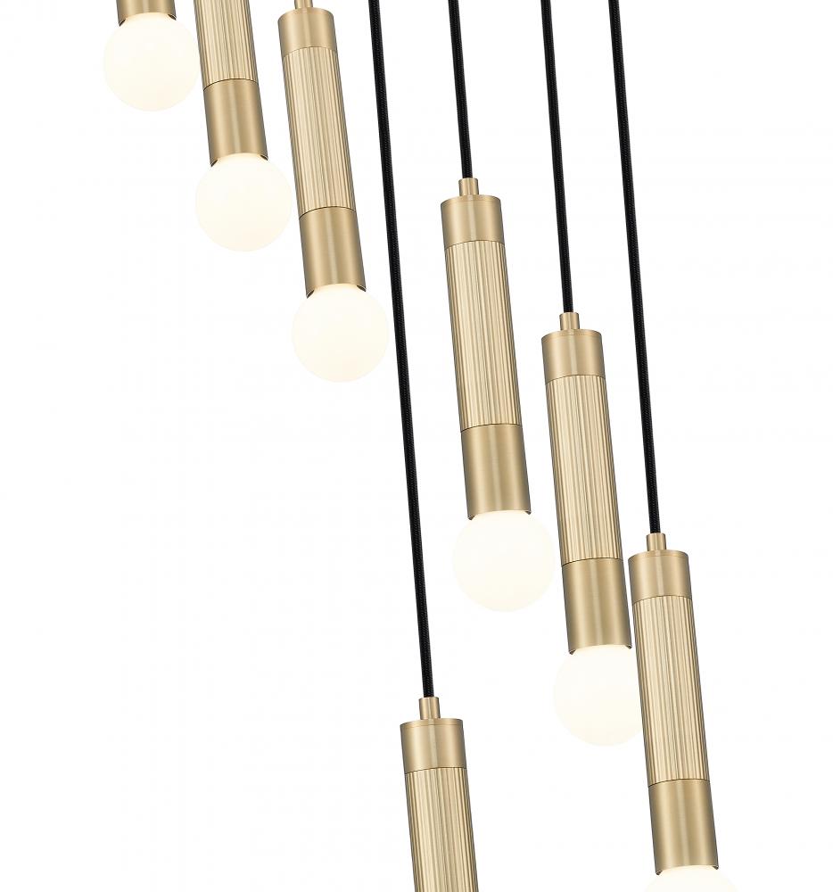 Create an aura of warm sophistication over your living or dining room with this modern seven-light chandelier. Its round canopy hosts varied lengths of braided cords that create a staggered, spiraling effect perfect for dimensionality in a refined setting. Its modern gold finish is elegant and warm, delivering on inviting aesthetics perfect for family and friends.