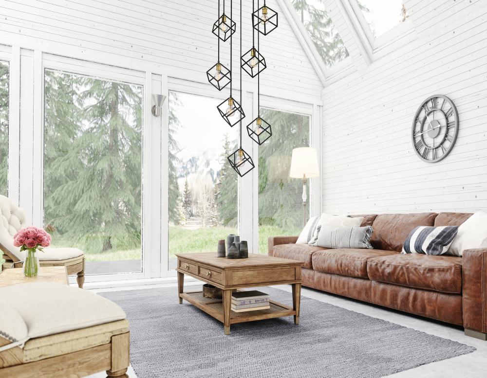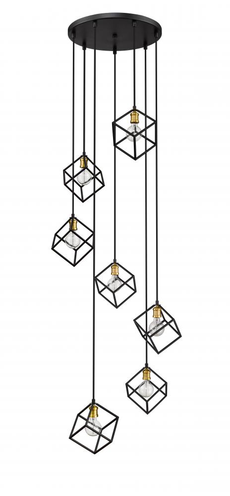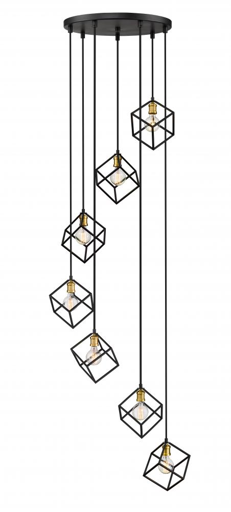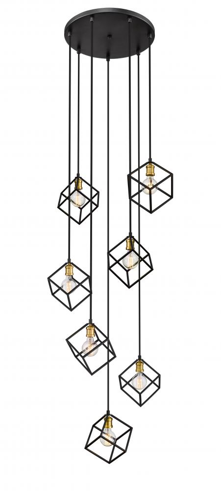 Energize the look and feel of your favorite room with this two-tone seven-light pendant. It features a bronze and olde brass finish with cube-shaped shades hanging at different heights for a dynamic look and feel that youll love. Its the perfect addition to any dining room, foyer, living room, or entertainment room.