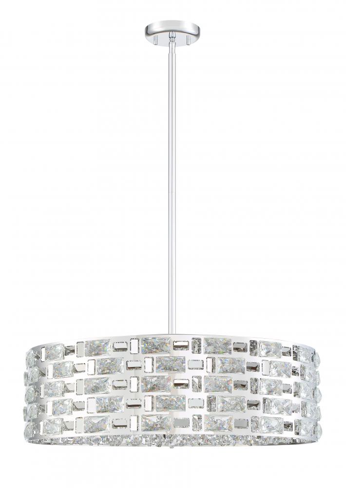 Chic and stylish, this chrome pendant light is dressed up with beads and crystals. Brilliant modern design is showcased in the open, rounded silhouette.