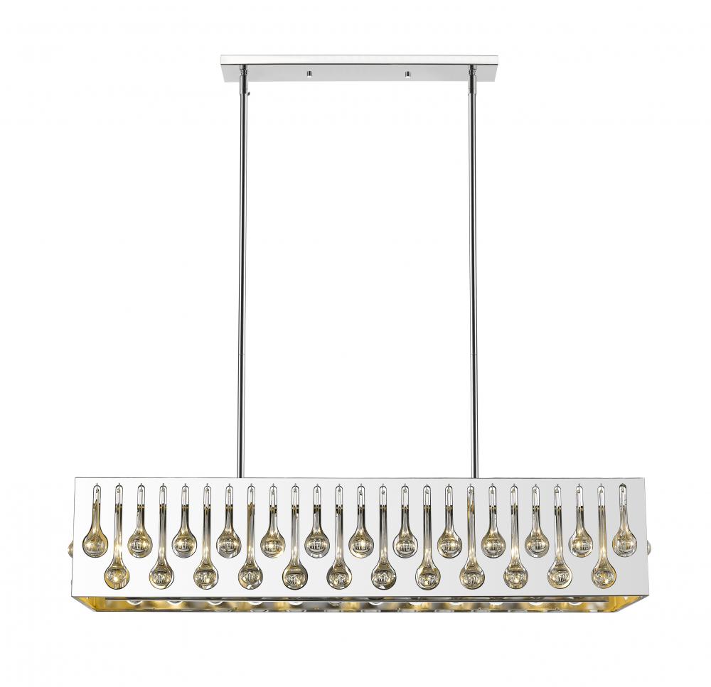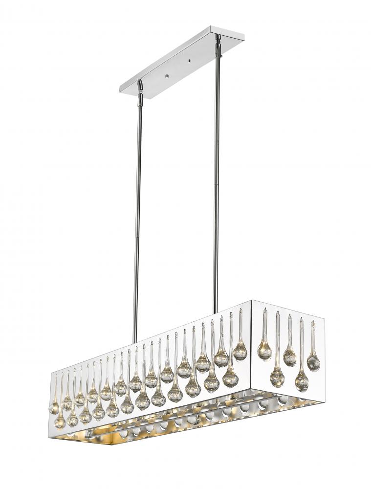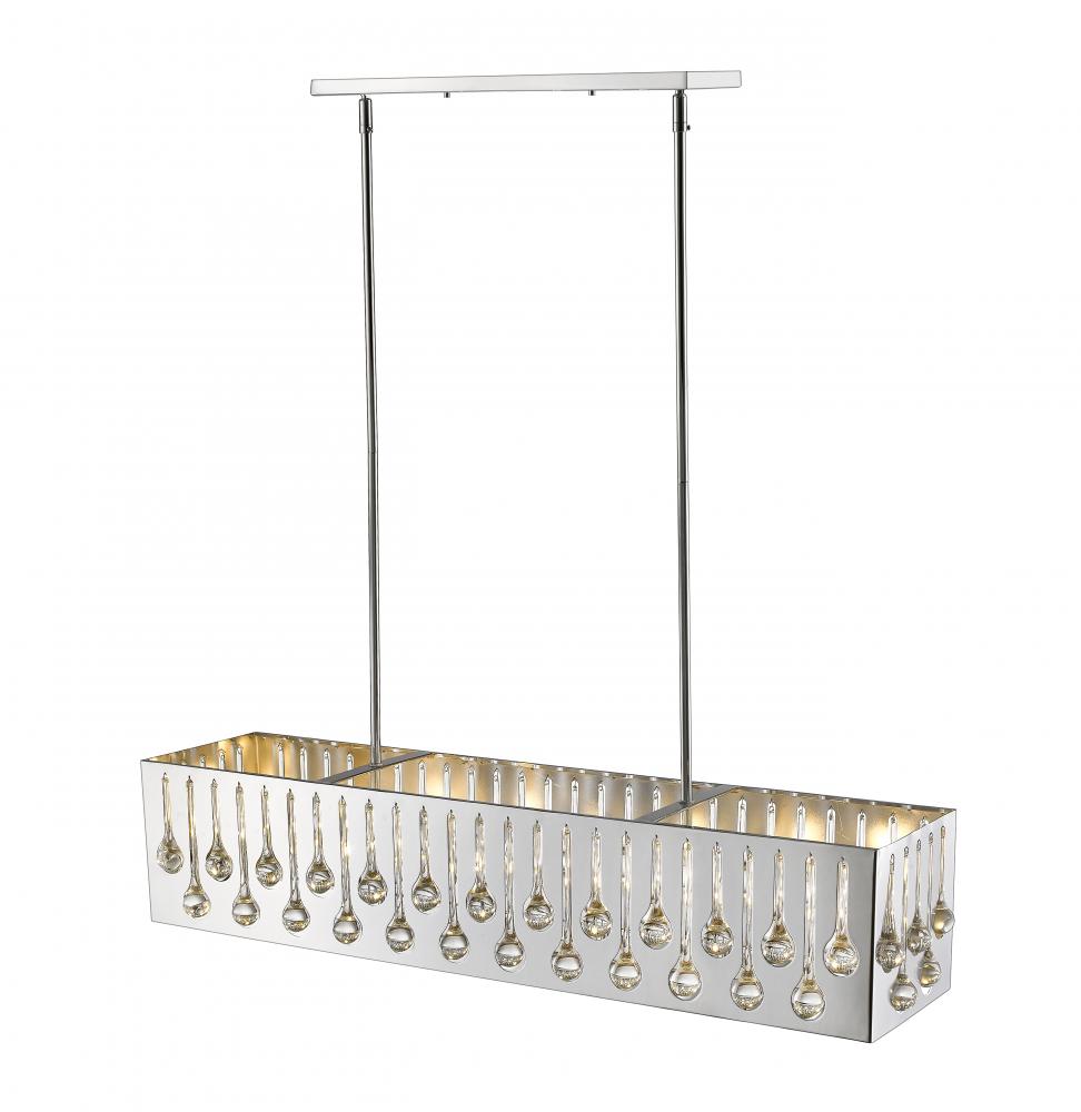 Marvel in the artistry of this exquisitely designed chrome and crystal island/billiards light. Remarkable detailing blends slender droplets of crystal over a sleek horizontal chrome finish steel frame that houses seven radiant lights.