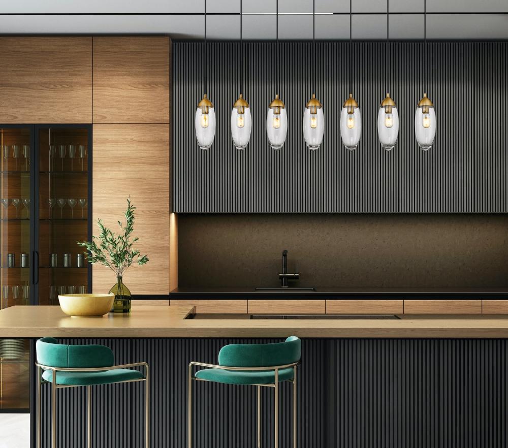 Customize a modern interior design scheme lighting suited to sleek elegance. A careful arrangement of delicate glass teardrop shades forms a minimalist silhouette with maximal impact as this seven-light chandelier becomes an expression of sophistication in a contemporary setting. Placed over an island, dining ensemble, or living area, this fixture with a cool brushed nickel finish metal canopy offers a sought-after mix of organic and gallery-inspired flavor.