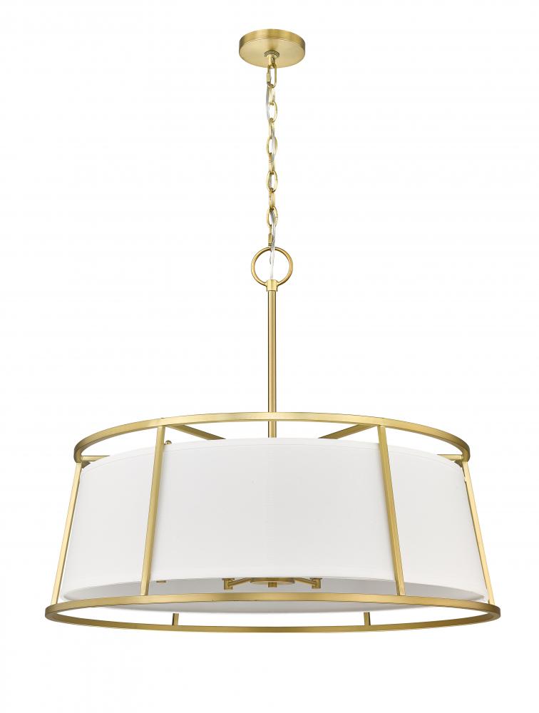 Compelling classic style with impressive ambiance reflects a fixture perfect for a modern living room, dining space, or entryway. The Lenyx eight-light pendant embraces an openwork metal frame offering full view of a classic white linen shade that keeps to a more conventional look with familiarity.