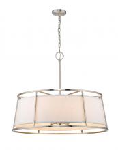 The Lenyx Pendant creates a statement in spaces both big and small. Elegant lines surrounding a white linen shade make Lenyx the perfect choice in any room. Offered in two sizes, and two finishes, brushed nickel with white linen, or iron ore with white lin