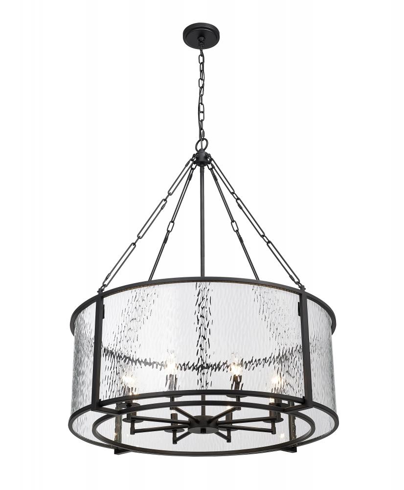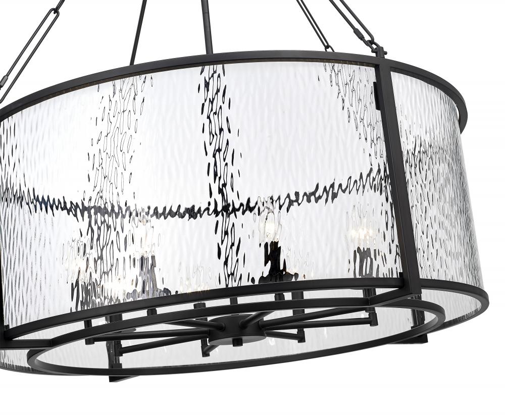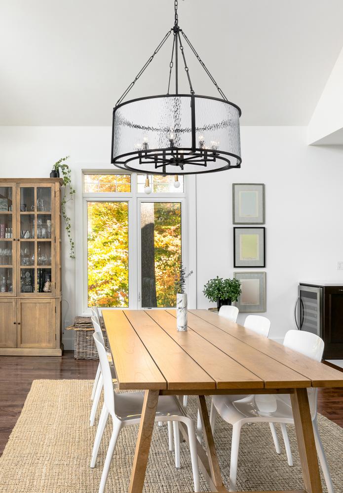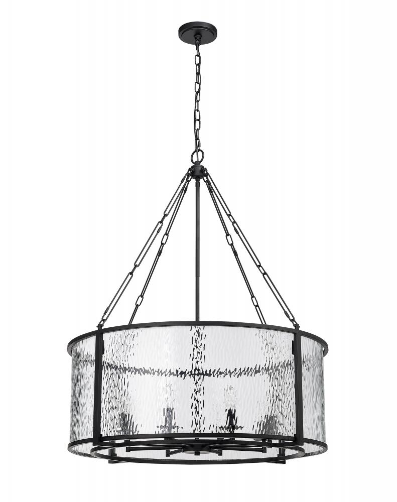 The bold scale of the Barrington series is perfectly proportioned to fit a variety of large spaces. The handsome steel cage in a Matte Black finish, along with the movement of its waterglass shade, adds distinction without competing with other elements in